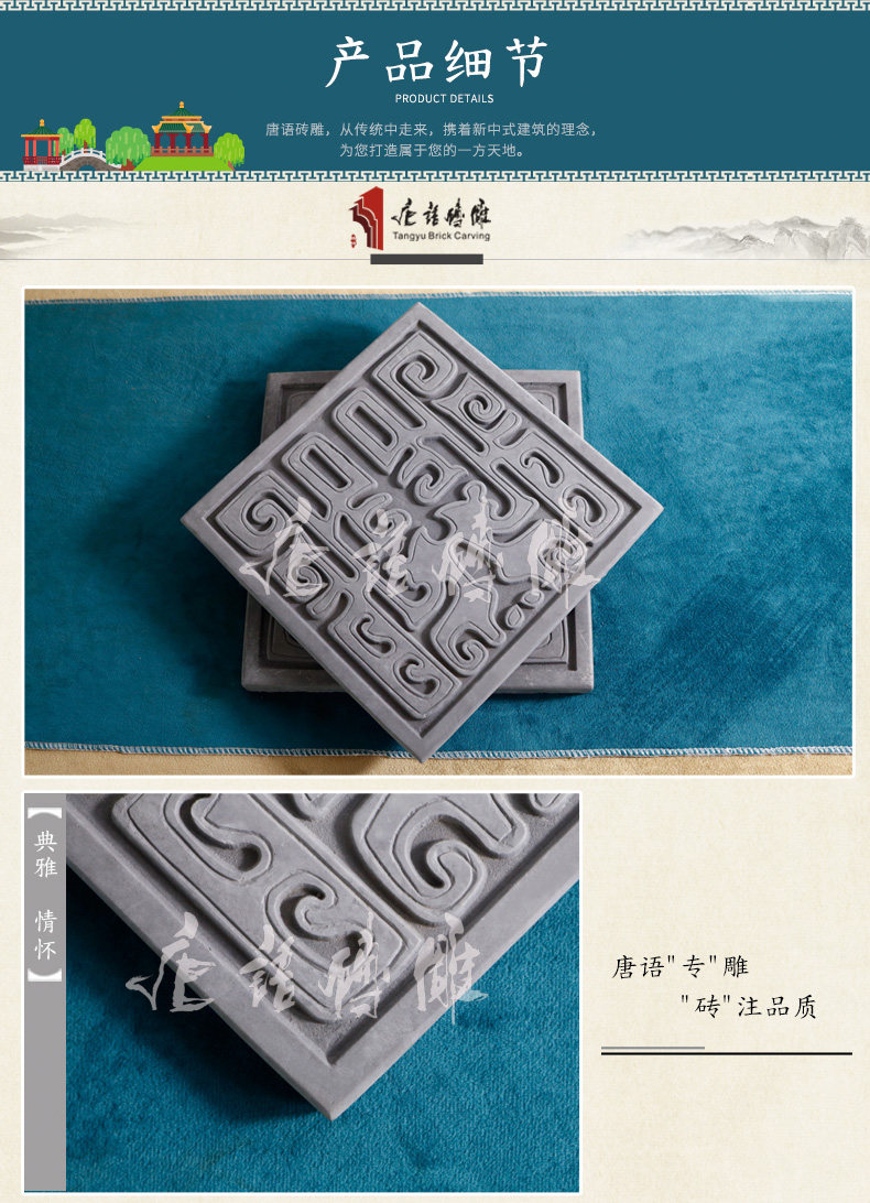 Язык Тан кирпич с антикварным кирпичным кирпичным кирпичным кирпичным настенным украшениями.