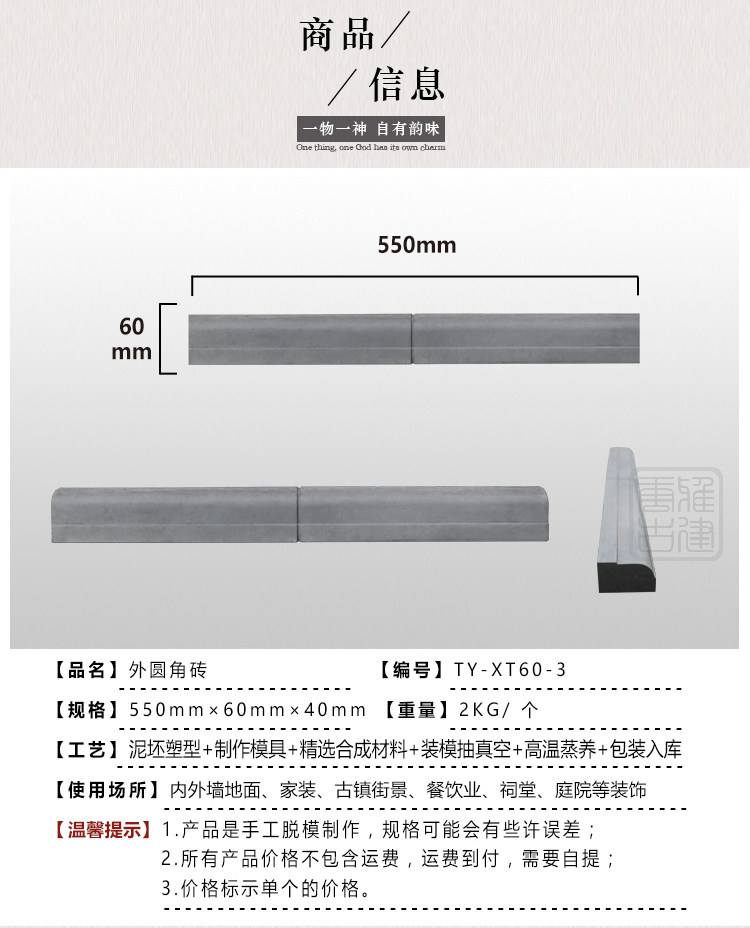 Древние декоративные материалы кирпичная резьба антикварная теневая стена граница ян угольная линия 55 × 6 см. Внешний круглый угловой кирпичный тень задняя стена плитка