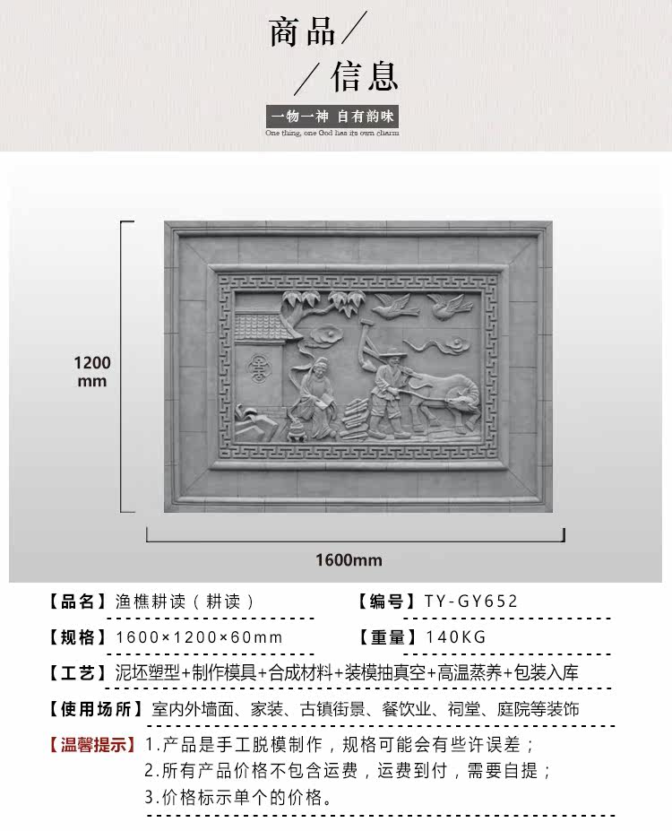 Тан Ягу Цзянь Античный кирпичный кирпичный резьба Тень Тенс 1,6*1,2 М Рыбацкое сельское хозяйство (культивирование) ty-gy652