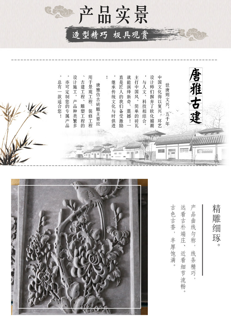 Тан Яджу антикварный рельеф кирпичный кирпич резные двор теневой стена роспись от одного до 28*40 см. Красота