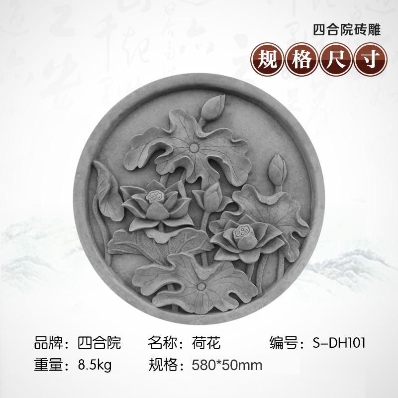 Сихейуанская кирпичная резьба круглая антикварная стена рельеф Фоновая стена стена плитка роспись 58 см Лотос DH101 Теневая стена