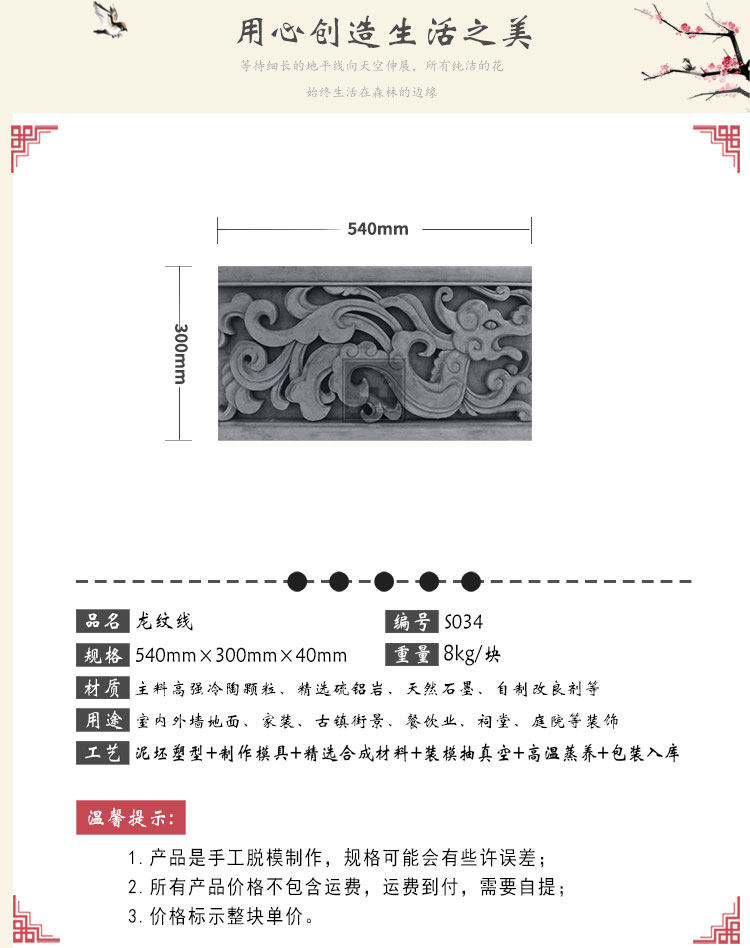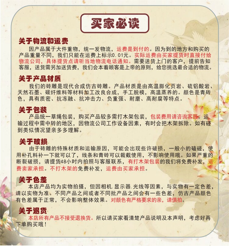 Материал: Синтетическая кирпичная резьба в основном обрабатывается холодными частицами Дао и другими материалами.