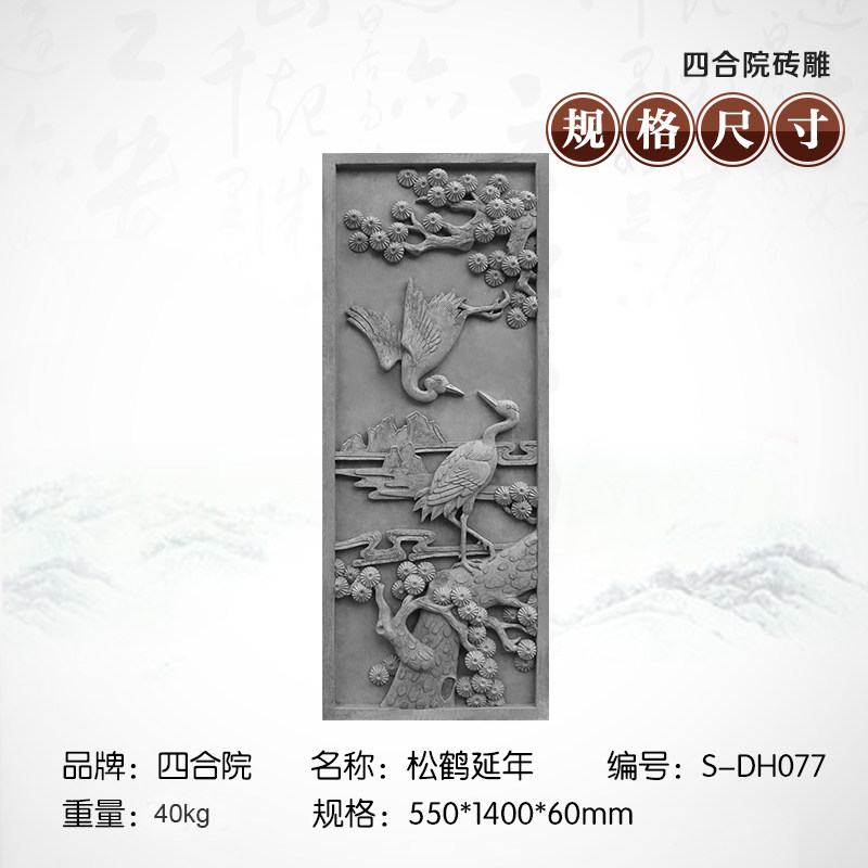 四合院 Кирпичная резьба антикварная стена рельеф -фона стена синяя кирпичная стена 55*140см Расширение сосны DH077 DH077