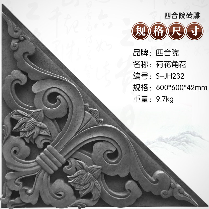 Siheyuan кирпичная резьба антикварная стена рельефная фона стена зеленый кирпичный кирпичный кирпич 60 см лотос рог цветок jh232 теневая стена
