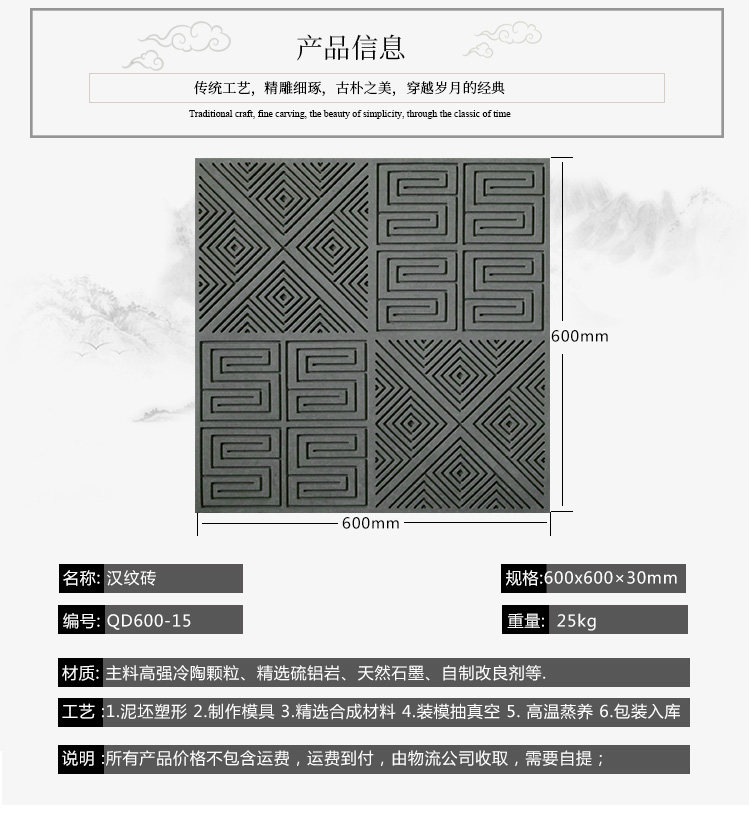 Танг -динг кирпичной резьба F Antique Green Brick и Han Pattern до 60 см династии Антикварная плитка на полу.