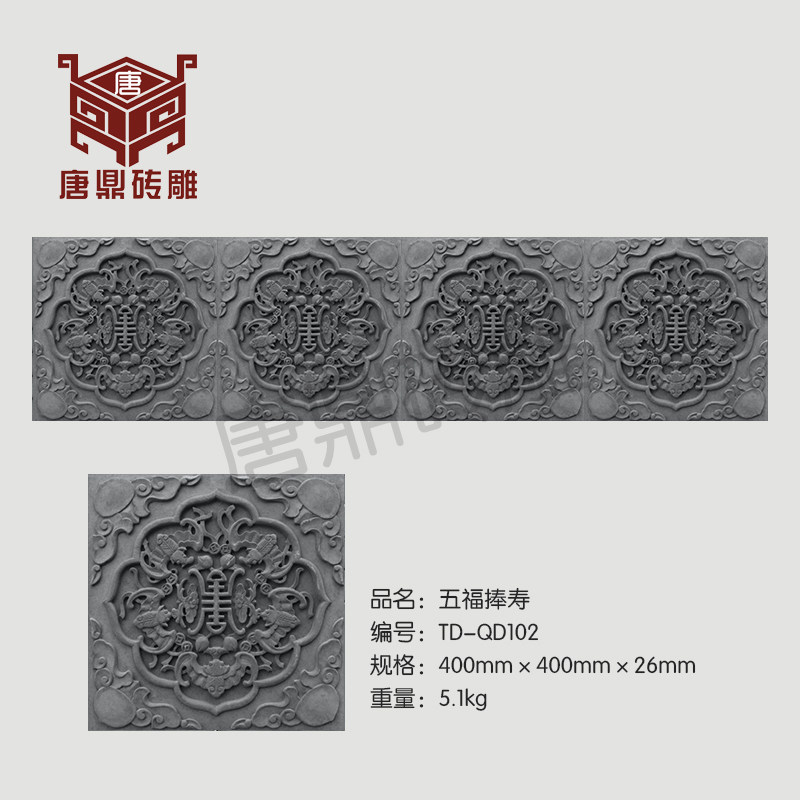 Тан Дин Кирпинг резьба пять благословений жизнь 40 × 40 см.