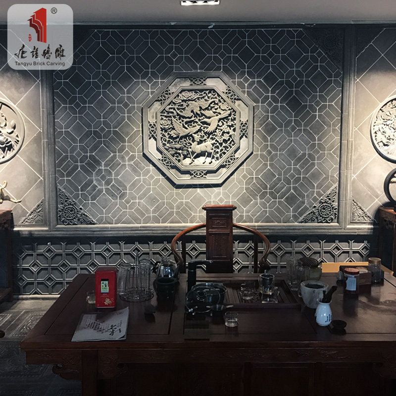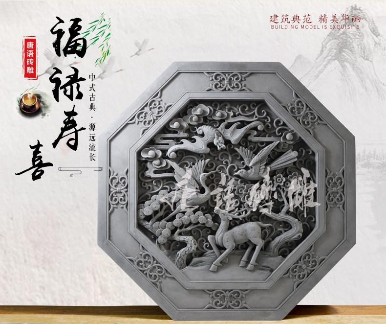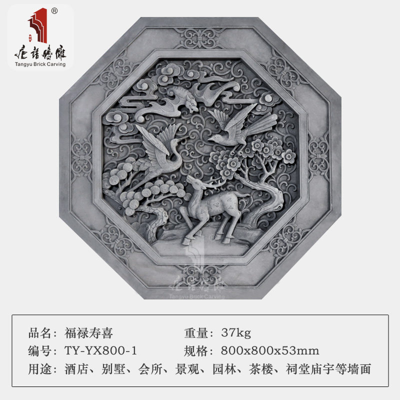 唐语 Синий кирпичный кирпичный резьба Фулу Шоу, как антикварная кирпичная резьба, теневая стена, китайский сад Древние строительные материалы 80 см.