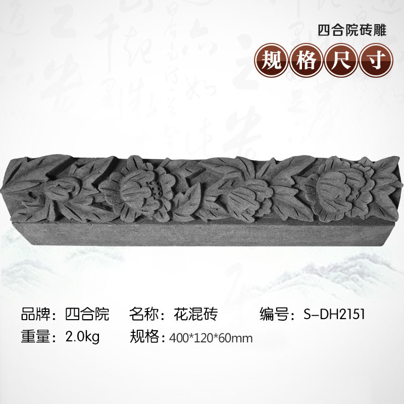 Древний двор кирпичника, вырезка древняя дверная подвеска, рельеф 40*12 см. Цветок смешанный кирпичный кирпичный кирпич древний строительный материал Голубой кирпич DH2151