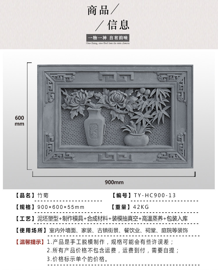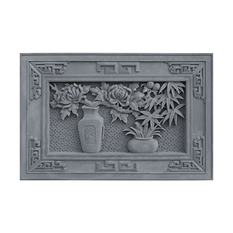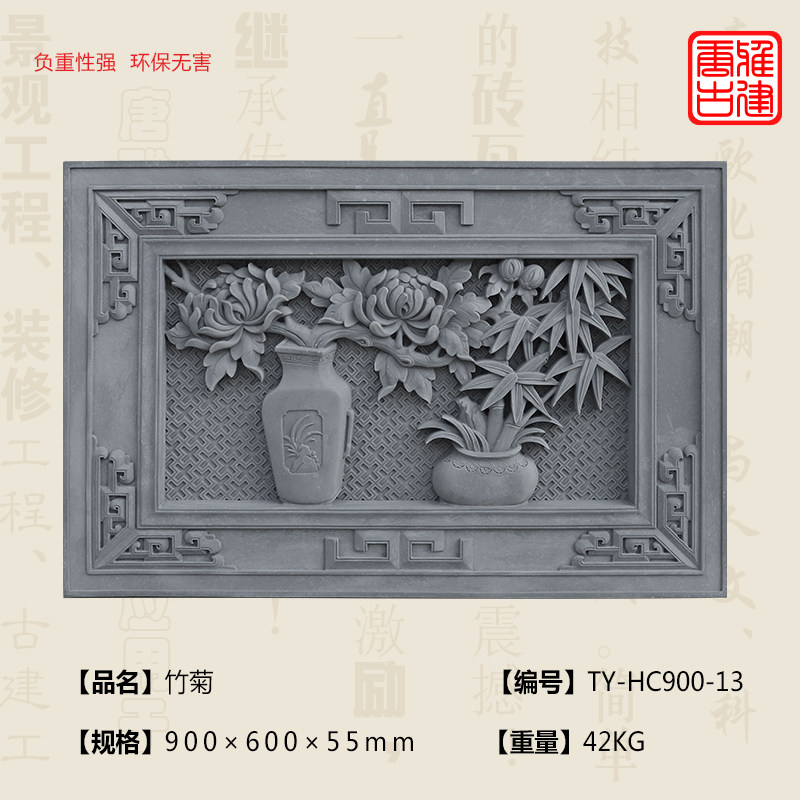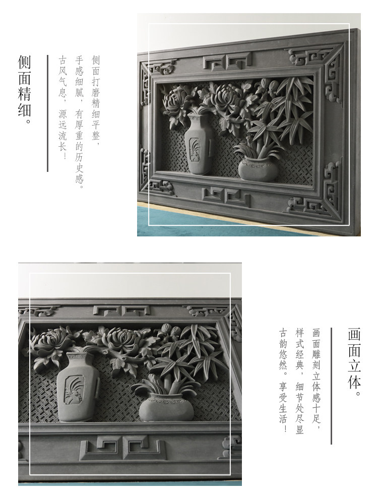 Tang Yagu Jianjian Brick Caring Carving Emerenge Emblem Emblem Antique Decorment Shadow Wall Mural Bamboo Chrysanthemum 90*60см