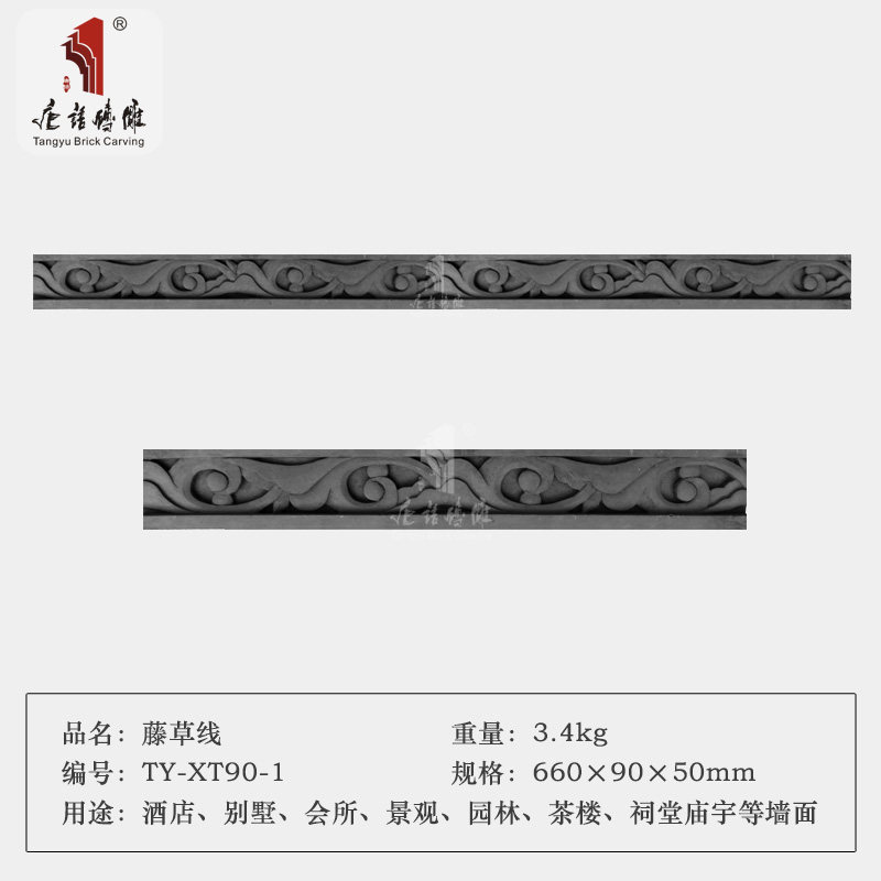 唐语 Кирпичная резинка виноградная трава, антикварный кирпичный кирпичный кирпич теневой стены на талии китайский двор, боковая линия удара 9 см.