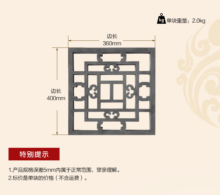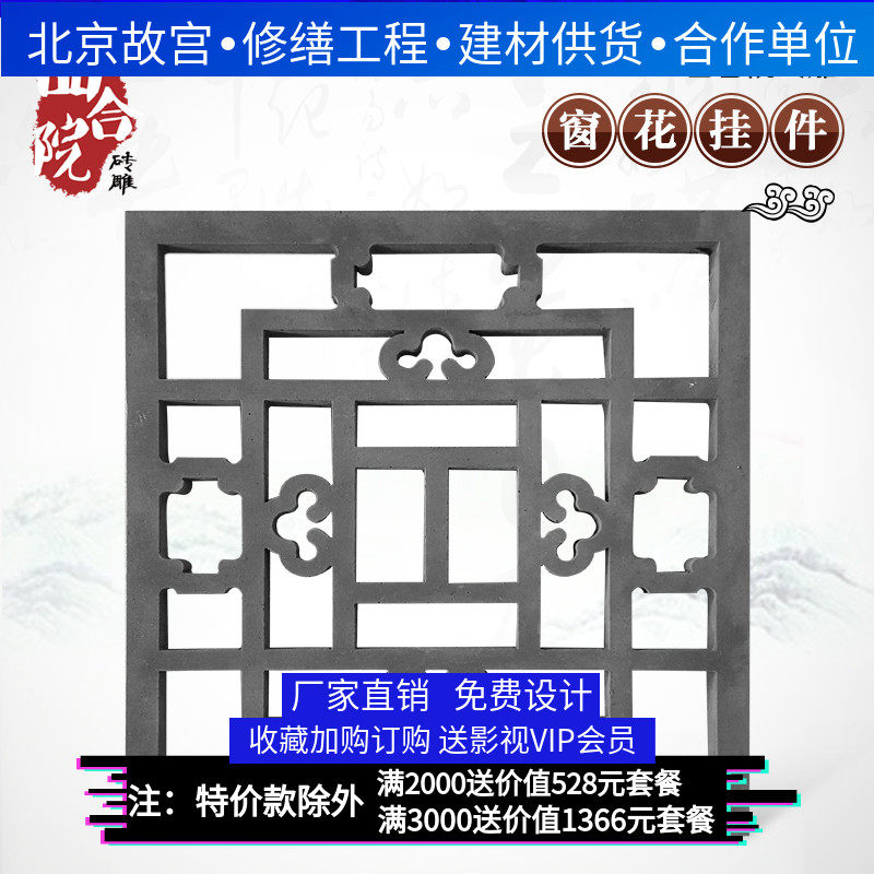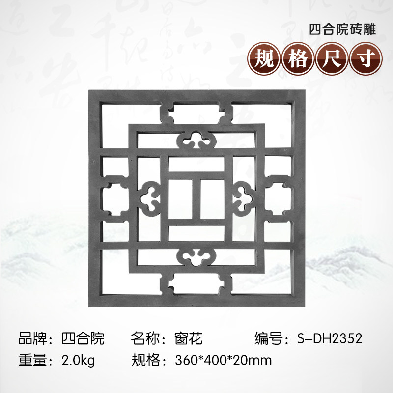 四合院 Кирпичная резьба антикварная рельеф 36*40 см. Окна цветочный кулон древний двор -простые окна с однопользованным окном DH2352