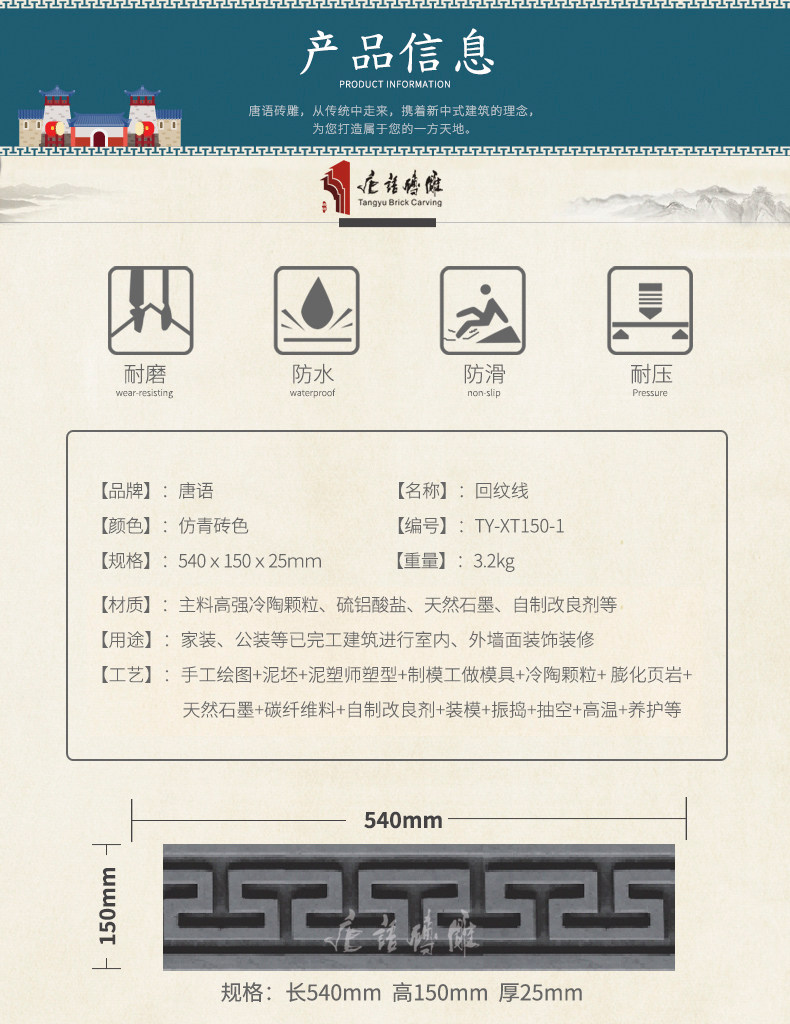 唐语 Кирпичная резьба спинка линия китайская стиля в стиле теневой стены имитация кирпича вырезанные древние зеленые кирпичные кирпичные кирпичные кирпичные кирпичные линии 15 см.