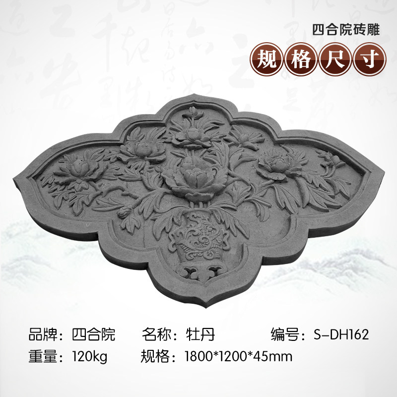 Сихейуанская кирпичная резьба антикварная стена рельеф Фоны Стена Зеленая стена кирпич Древнее здание украшения 180*120см Пион DH162