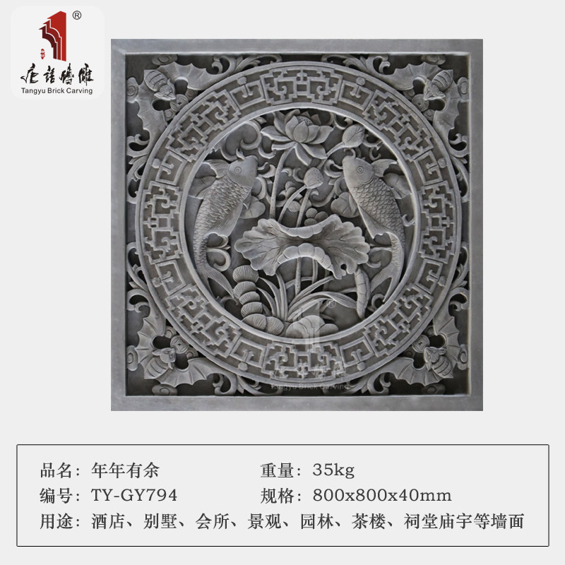 Язык Tang 80 см. Квадратное цветочное окно Древнее здание зеленое кирпичное кирпичное кирпич