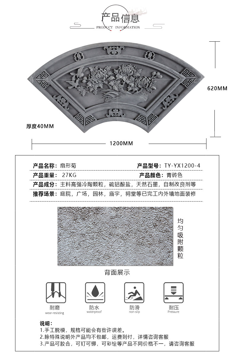 唐语 Антикварный кирпичный отель вилла стена подвесной стена, висящая картина теневая стена ядра китайского вентилятора китайского двора хризантема