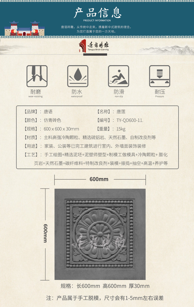 唐语 Кирпичная резьба антикварная зеленая кирпичная стена грунт квадрат китайский китайский кирпичный кирпичный гостиная без стекла плитка Tanglian 60 см.