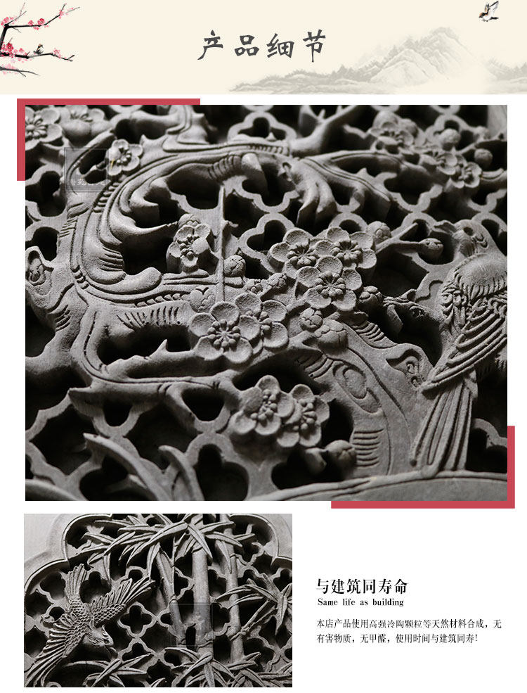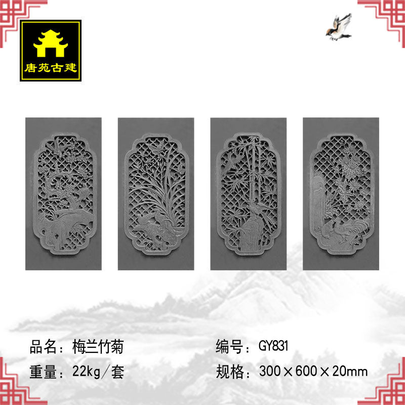 Тангюань Гуджян Анимимизированная кирпичная резьба свинг -стена высокая роспись 30*60 см Мейлан Бамбук Хризантема GY831