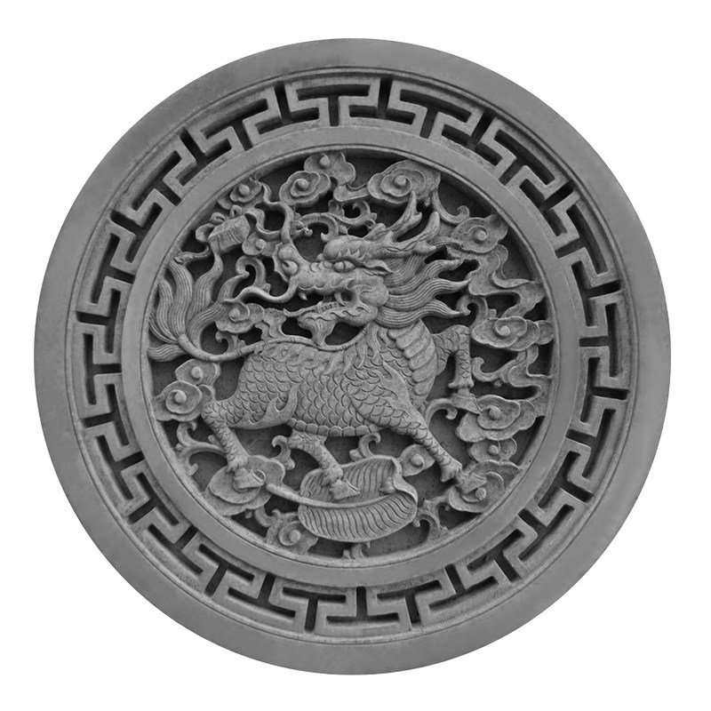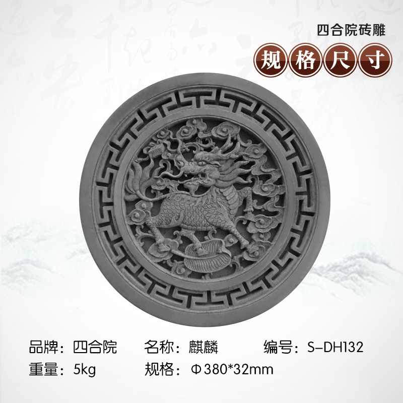 Сихейуанская кирпичная резьба антикварная стена рельефная резьба φ38cm Kirin Shadow Wall Foine Wall Chrick украшение синий кирпич DH132