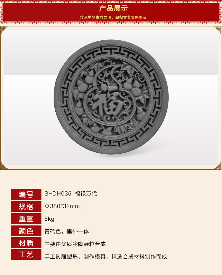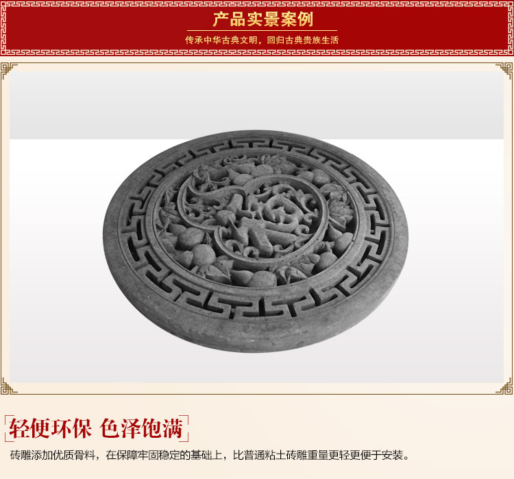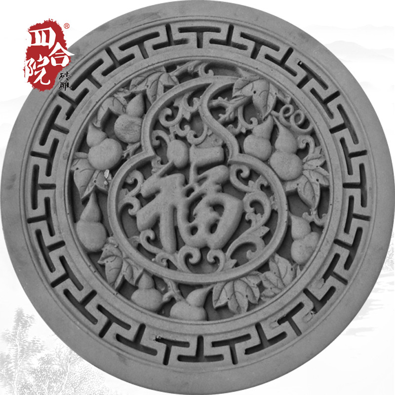 Сихейуанская кирпичная резьба круглая антикварная стена с рельефной стеной стена зеленый кирпичный кирпич φ38 см. Fulu Bantile DH035