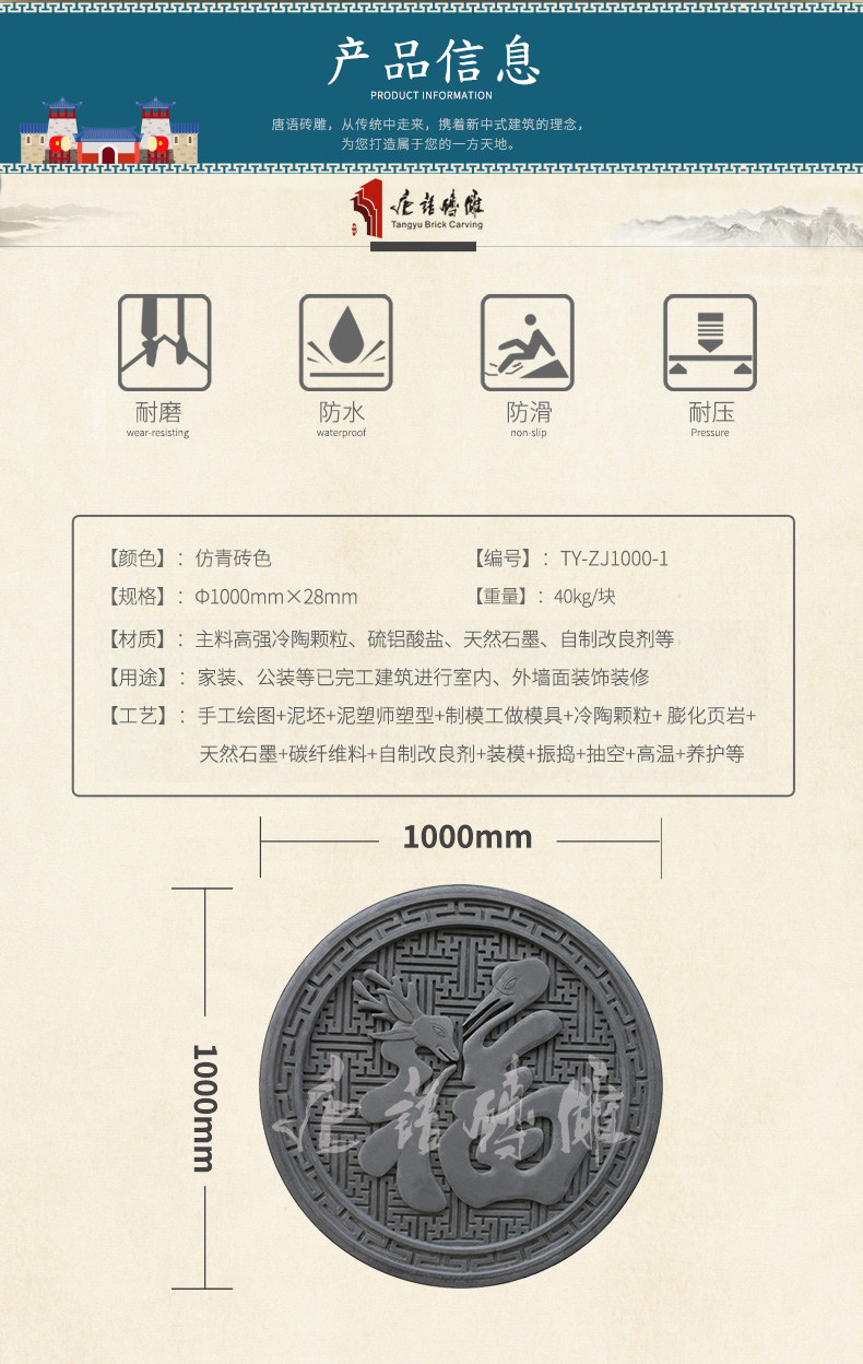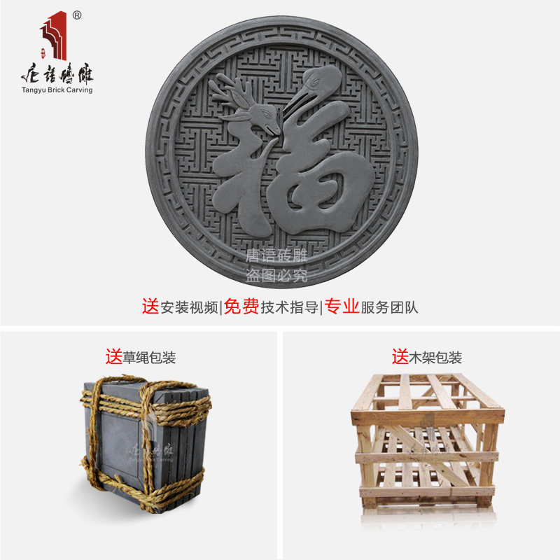 唐语 Благословение кирпичной резьбы антикварная кирпичная резьба наружная стена декоративная рельефа китайская теневая стена Древние строительные материалы 1 метр круг
