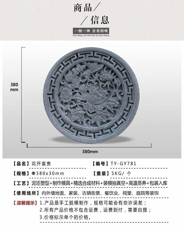 Танга Древний построенный кирпичный кирпичный рельеф стены двор декоративный антикварный ресторан подвеска 38см цветы цветут богатый gy781