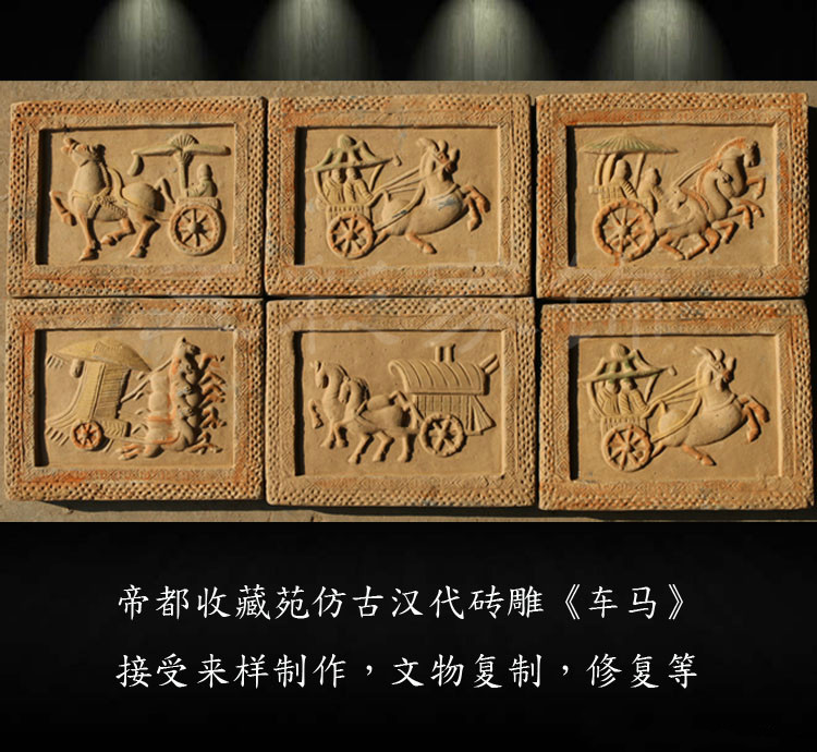 Античная кирпичная резьба, тележки с лошадьми династии Хан