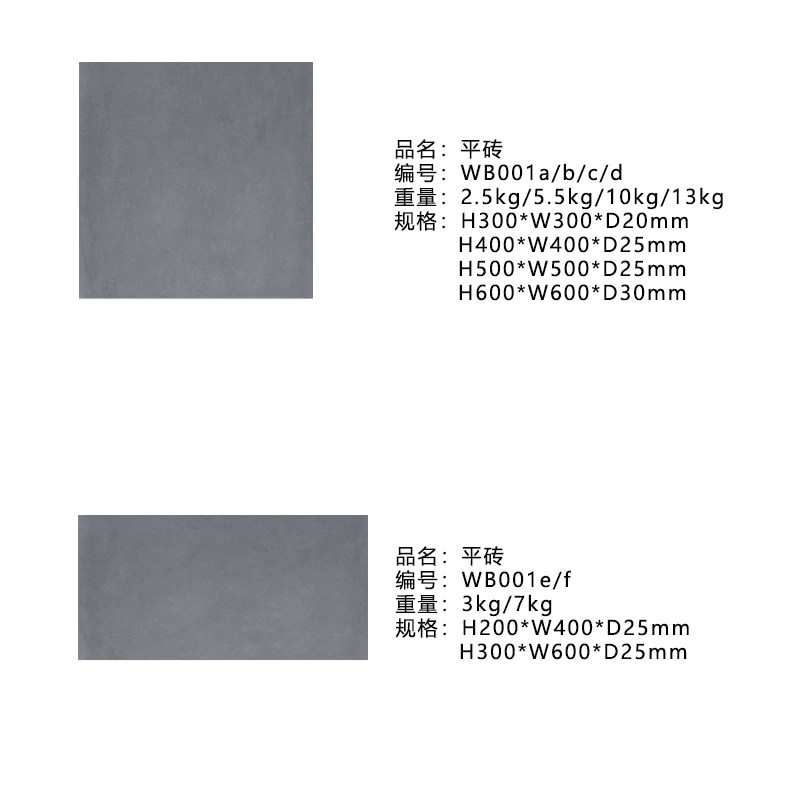 WB001c 500*500*25mm 45Юань/кусок;