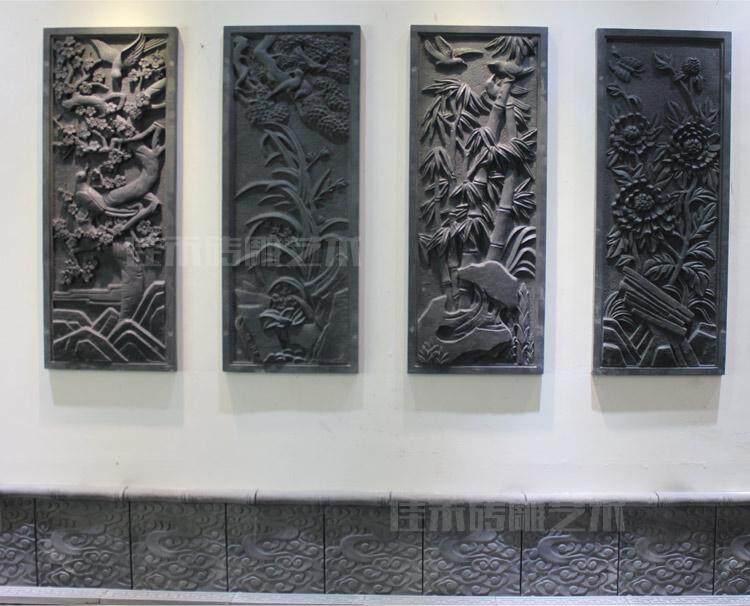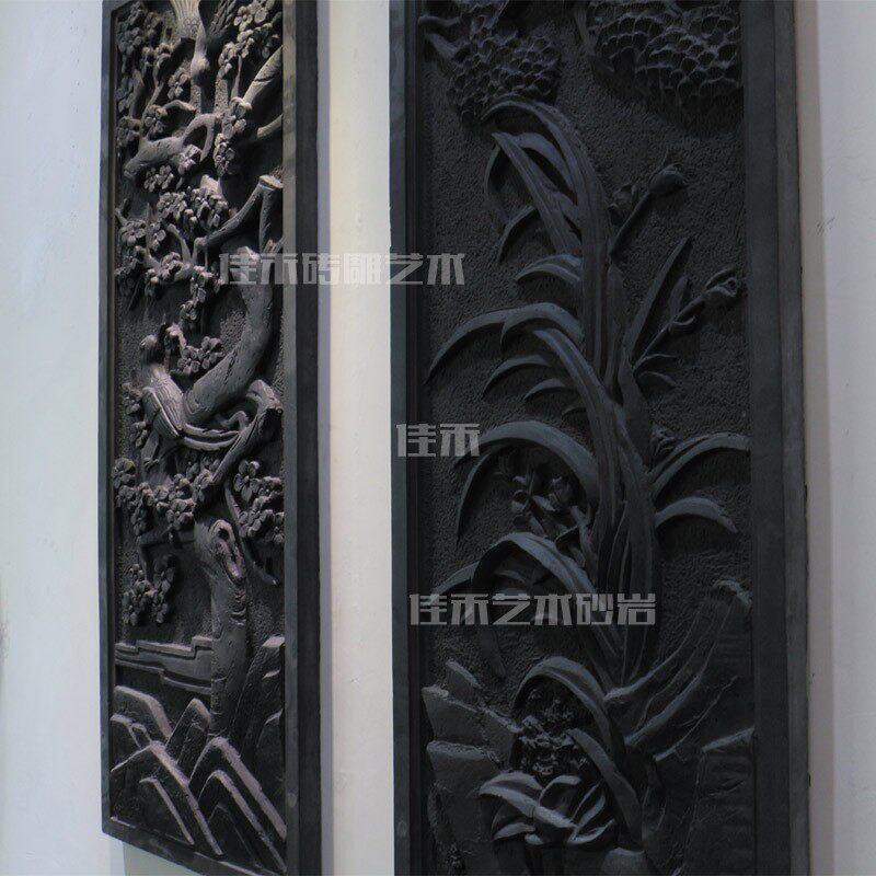 Античная резьба по кирпичу во внутреннем дворе в китайском стиле, изысканные рельефные изображения, ворота древних зданий из синего кирпича, подвески для украшения стен, сливовая орхидея, бамбук и хризантема.