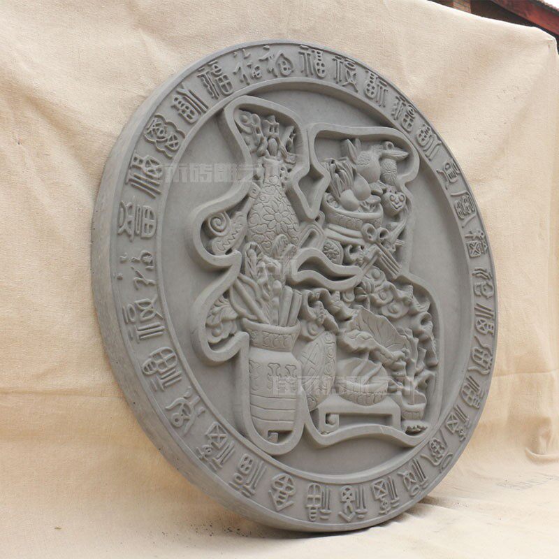 Jiahe кирпичный резьба арт круглый кирпич рельеф -рельеф подвесной кулон Antique Shadow Wall Photo Wall Blessing Характер φ60см