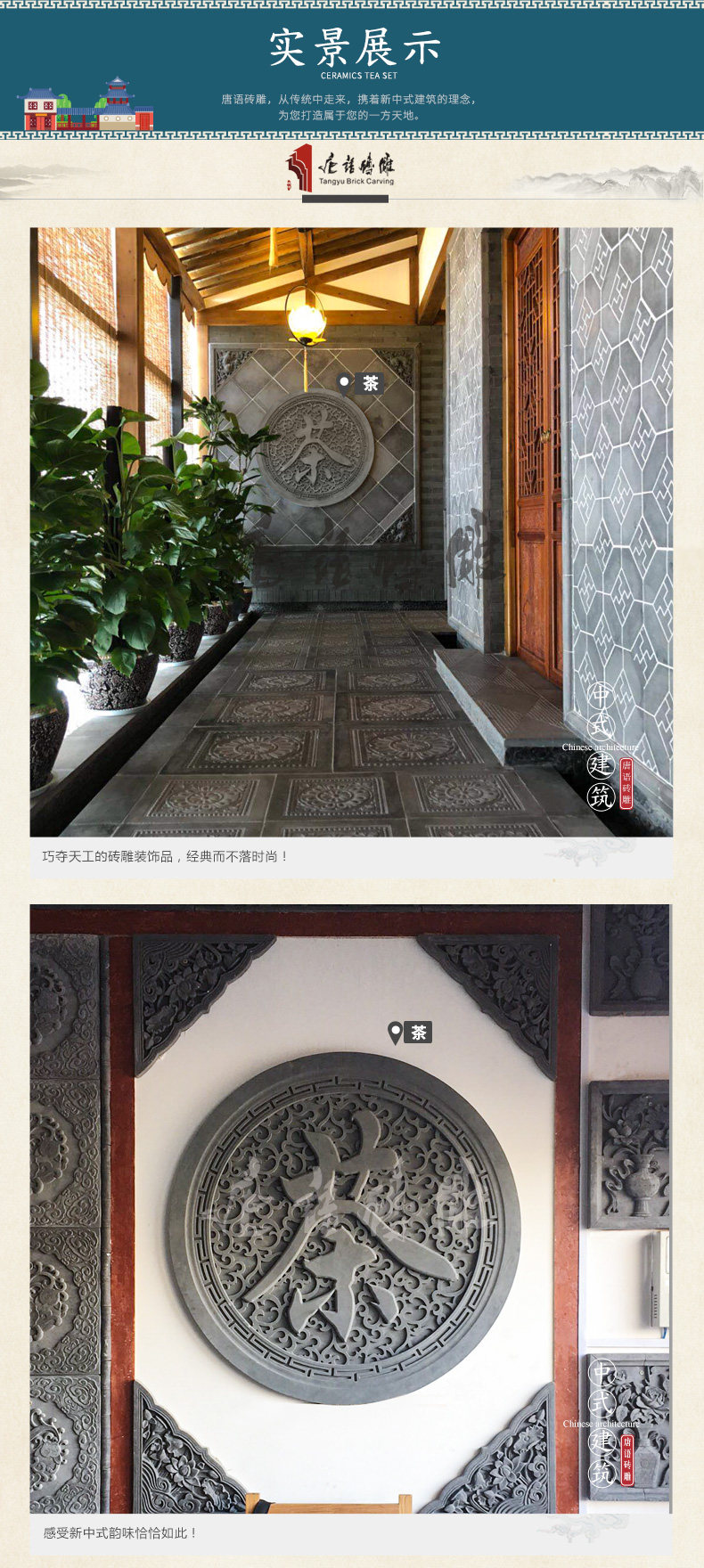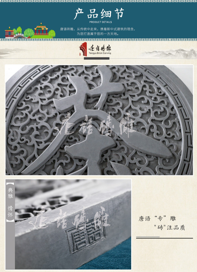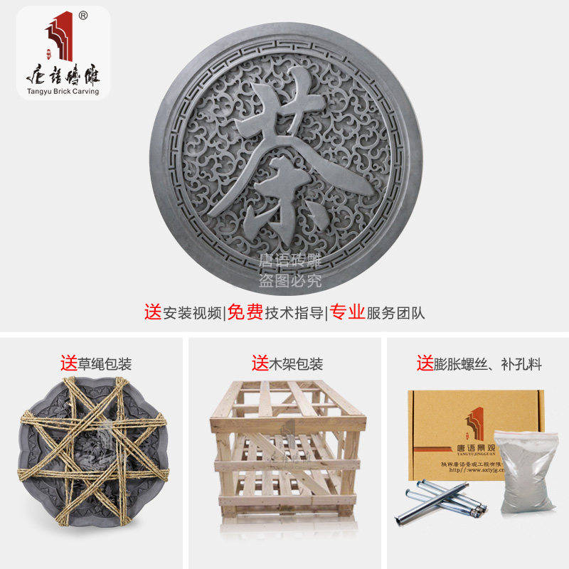 唐语 Круглый чайханя древний зеленый кирпичный кирпичный резьба антикварная рельеф