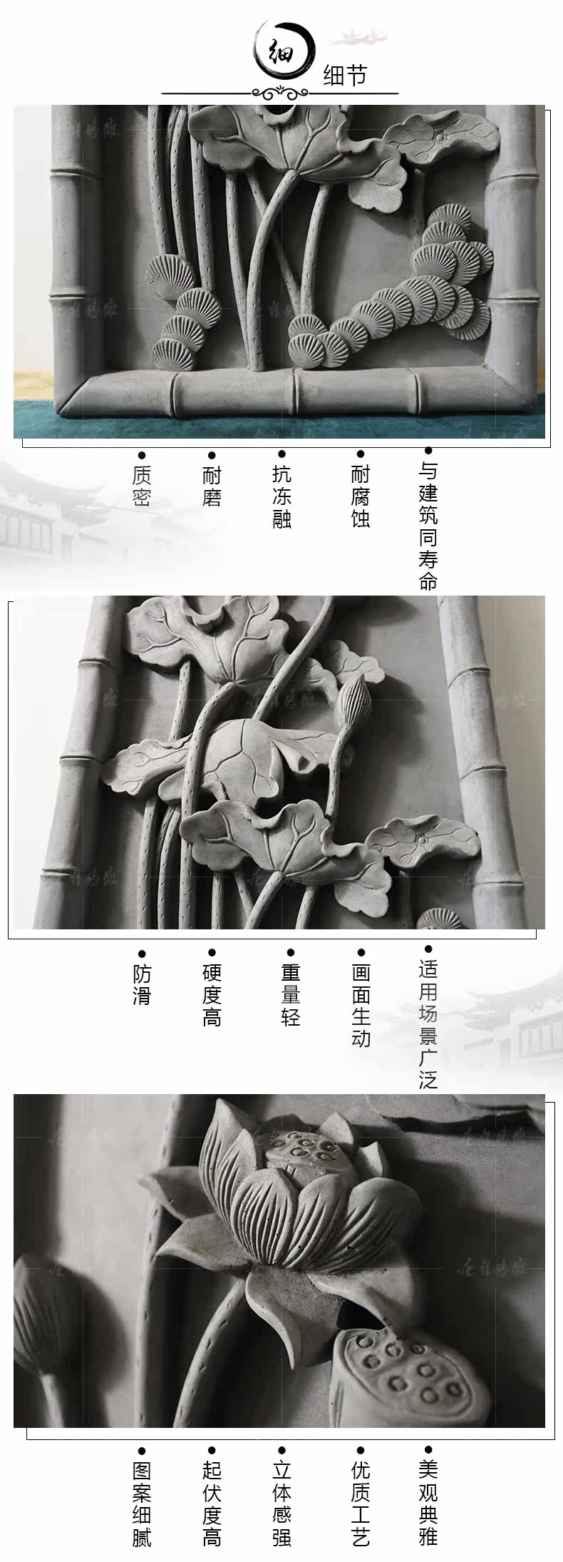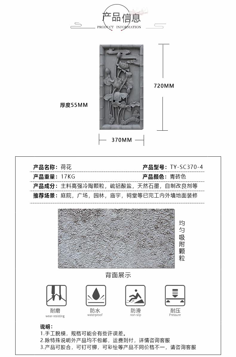 唐语 Вертикальная длина 37*72 см Древнее здание зеленый кирпичный кирпичный кирпич