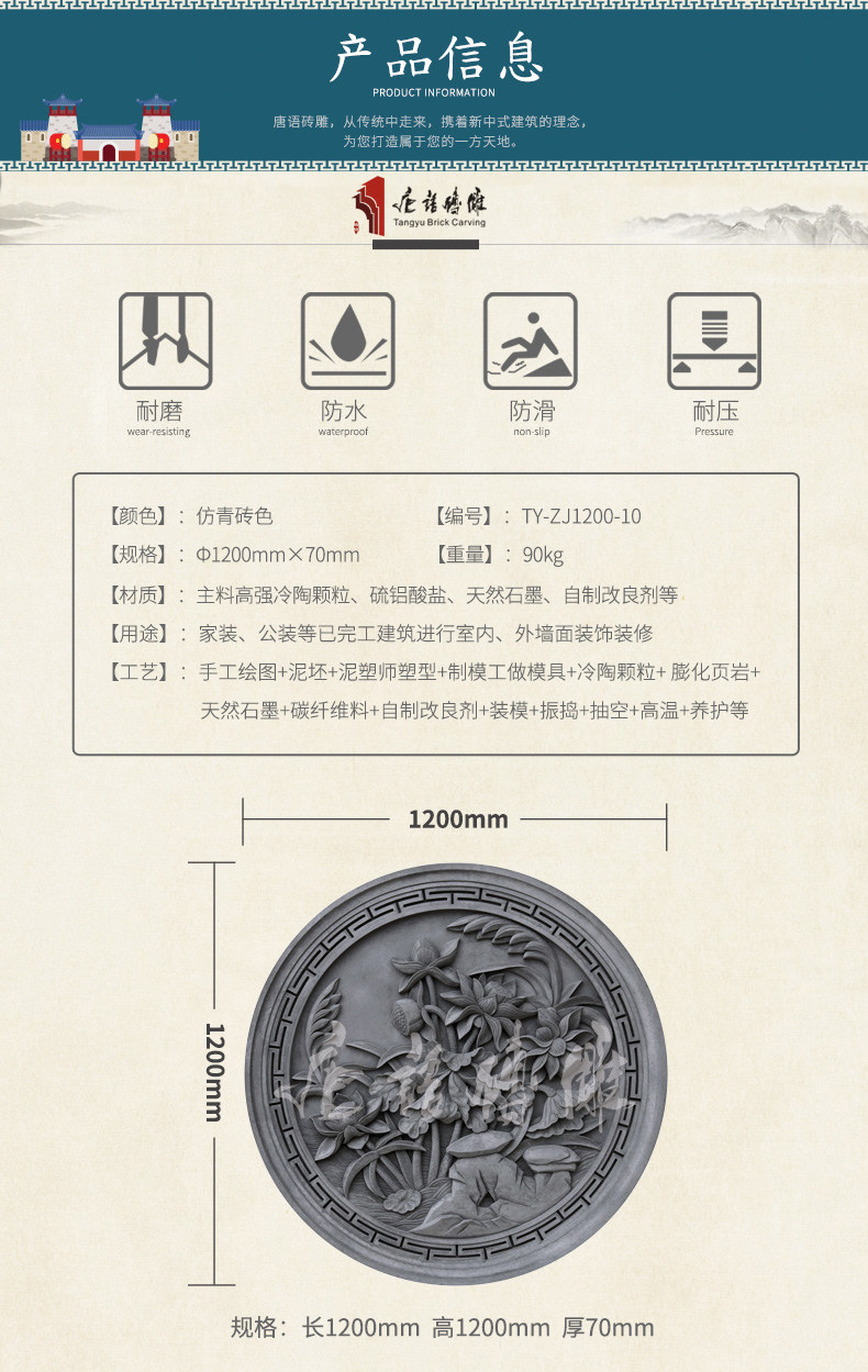 唐语 Раундта Цветочное окно Древний кирпичный кирпичный кирпичный кирпич
