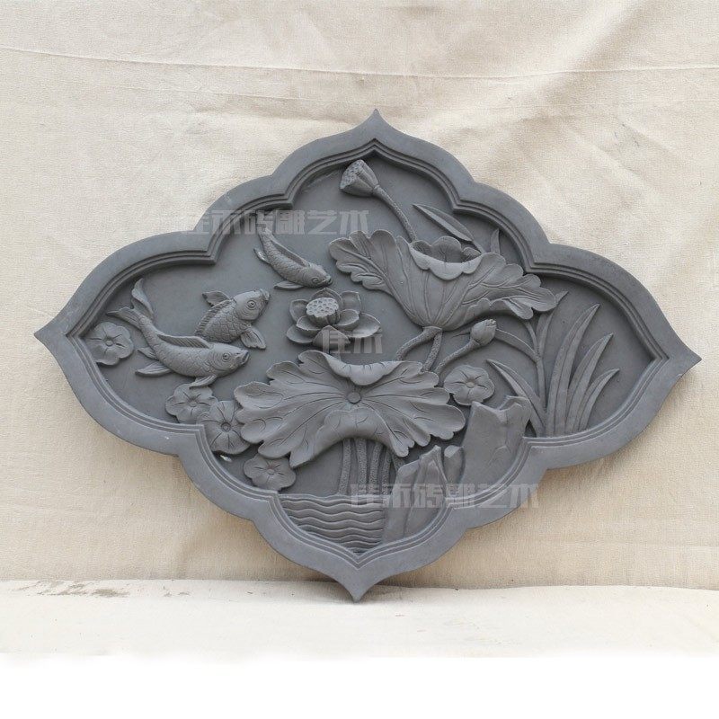 Китайский стиль древний кирпичный резьба с бриллиантами, рельеф, античная теневая стена, фоновая стена, украшение кулонного зеленого кирпичного карпа лотос