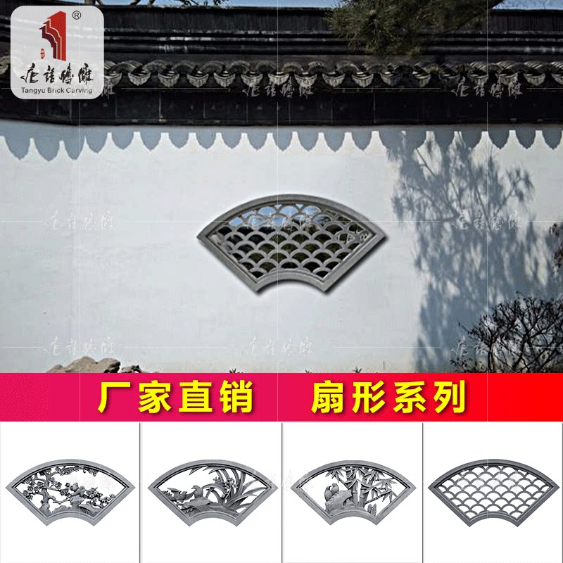 Язык Язык Античный кирпичный кирпич резные вентиляторы в пустоте цветочный окно среднего здания двора Хуай Фракция Украшение Украивание Цементная Цементная Грид Кирпич