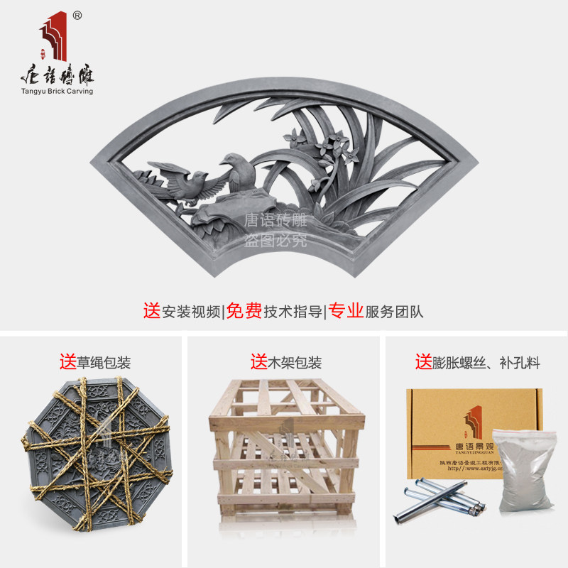 唐语 Криковая резьба антикварная зеленый кирпичный вентилятор в форме поляной орхидеи сад стены стена Подвеска Hui School Hollow Flow