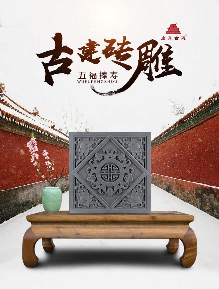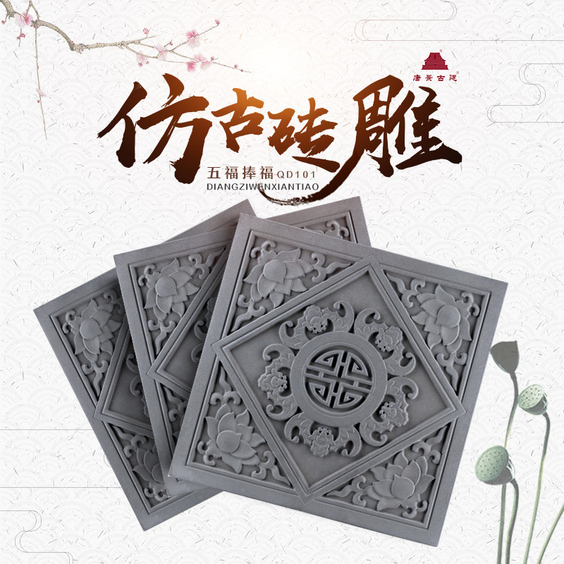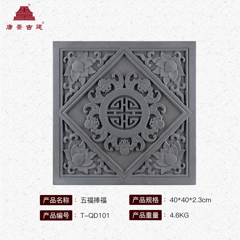 Tangjing Древняя здания настенная плитка антикварный рельеф 40 см. Благословение Wufu китайская китайская плитка китайская плитка