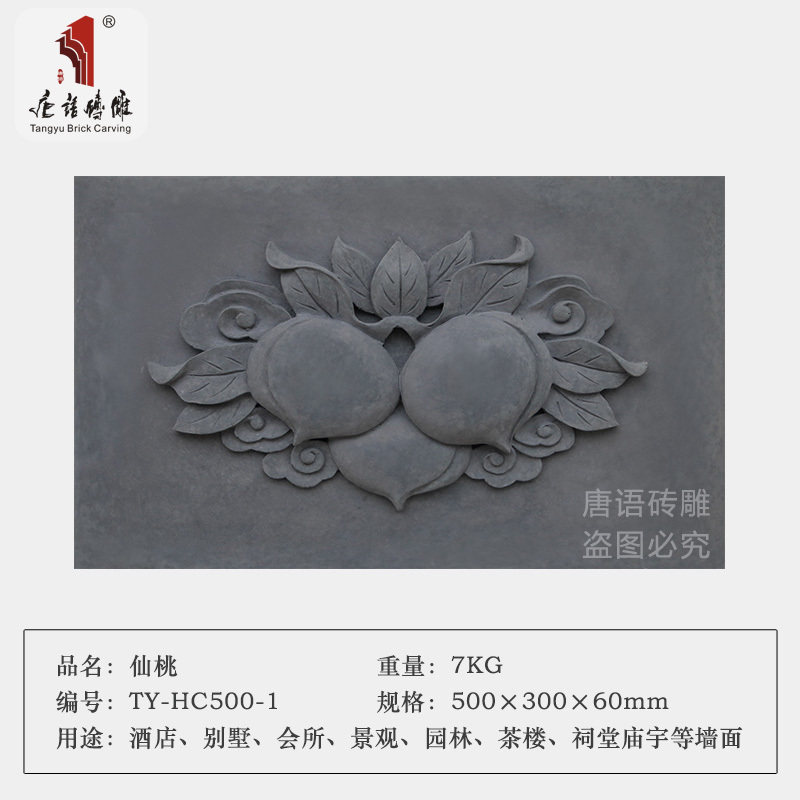 唐语 Кирпичная резьба антикварная китайская в стиле двор древняя строительная дверь голова школьной школьной декоративное образец подвесной сказочный персик Старый зеленый кирпич облегчение