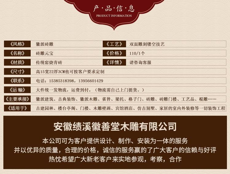 Hui Paimen Tower Древнее строительное компонент, ноги крупного рогатого скота, Юанбао Лианг Туоди Кирпич.
