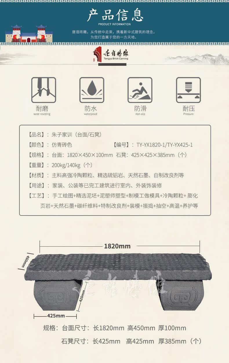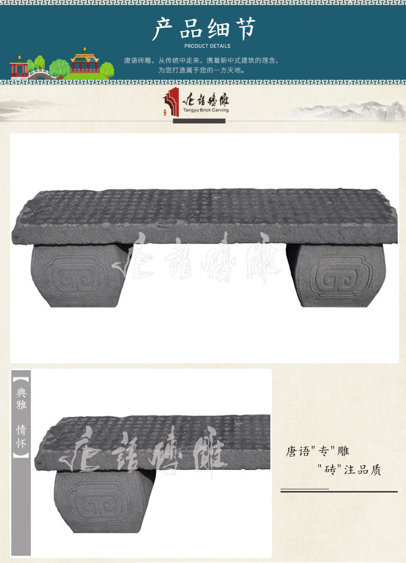 唐语 Кирпичная резьба Древняя зеленая китайская антикварная теневая стены, украшение столешницы для семейного воспитания Чжузи без каменной скамейки