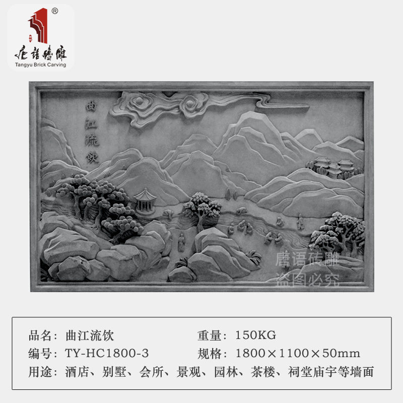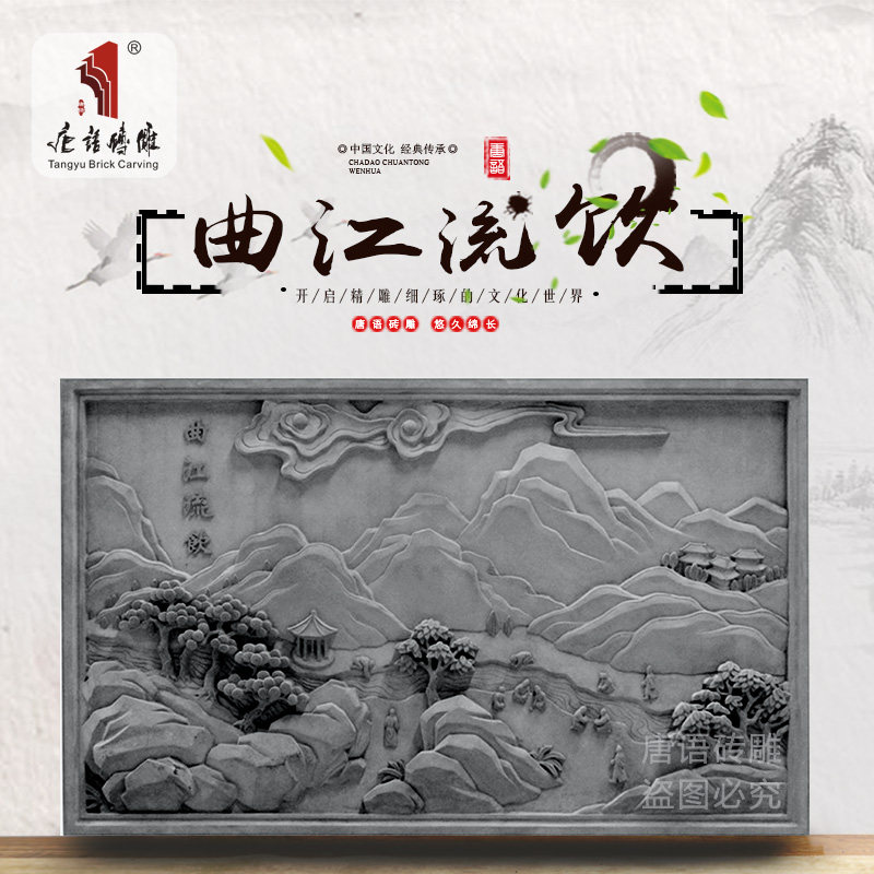 唐语 Кирпичная резьба китайская антикварная кирпичная резинка из тисненого украшения стены Большие висящие картины Гуанчжонг восемь живописных напитков Qujiang Flow
