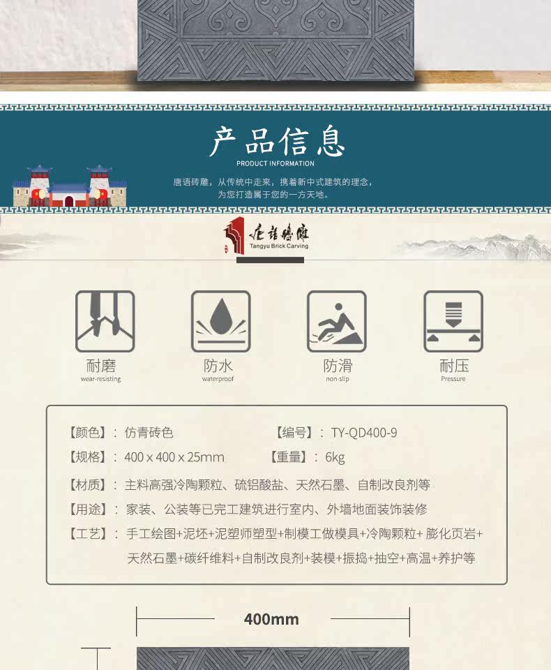 唐语 Кирпичная резьба китайский антикварный зеленый кирпичный двор мощено кирпич