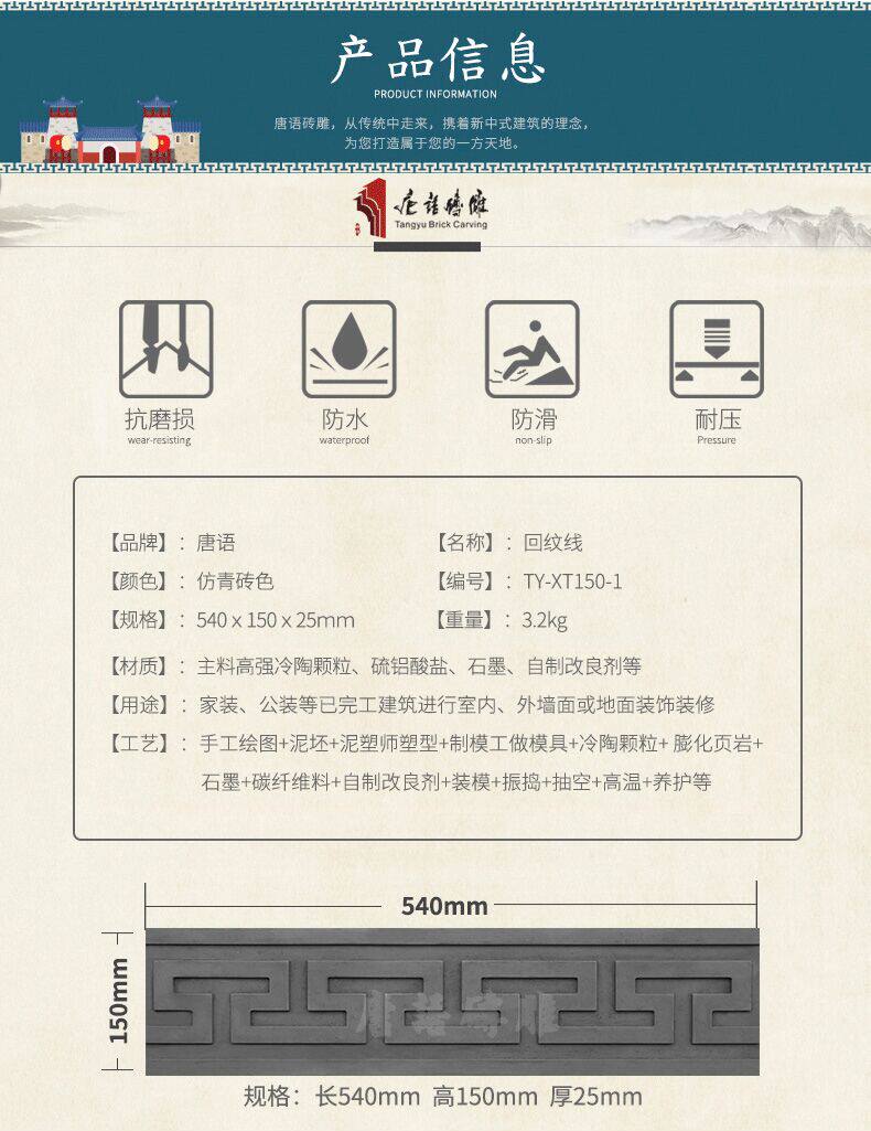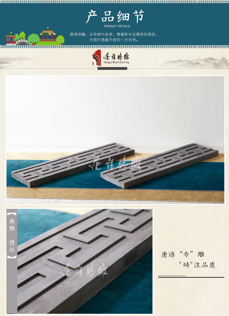 Язык Тан кирпич китайский антикварный кирпичный кирпичный кирпичный кирпич теневой стены рама рама рама -линейная ширина земли 15 см. Задняя линия