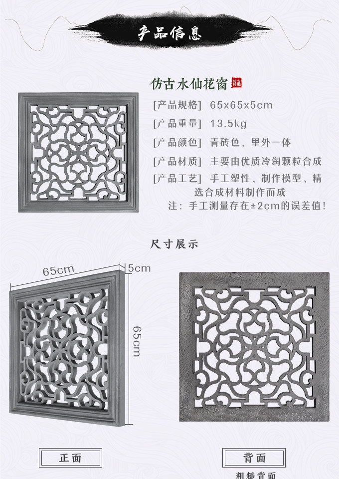Siheyuan Hollow Aquuside Fairy Flower 65*65 см. Квадратные квадратные, одноподтвержденные окна Древнее двор украшения DH6617