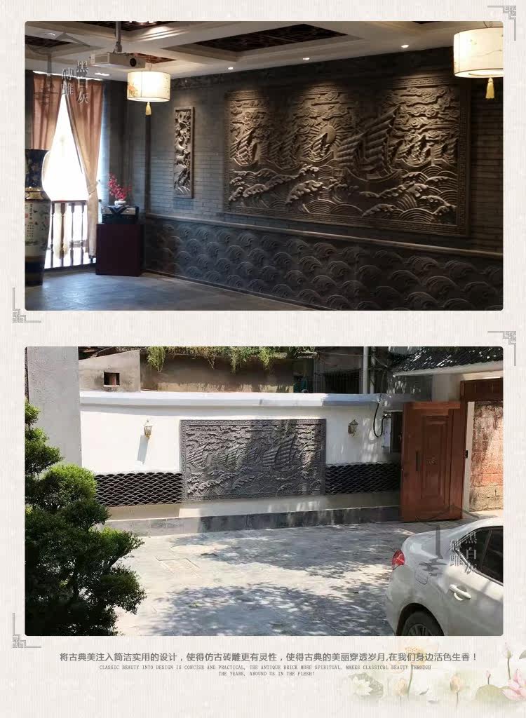 Черно -белая серая имитация антикварная кирпичная резьба древняя кирпичная строительство китайская стиль зеленый кирпичный кирпичный фона стена 3*5,5 мл.
