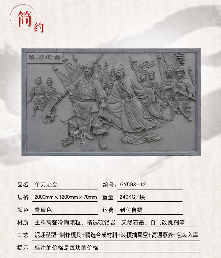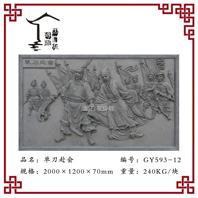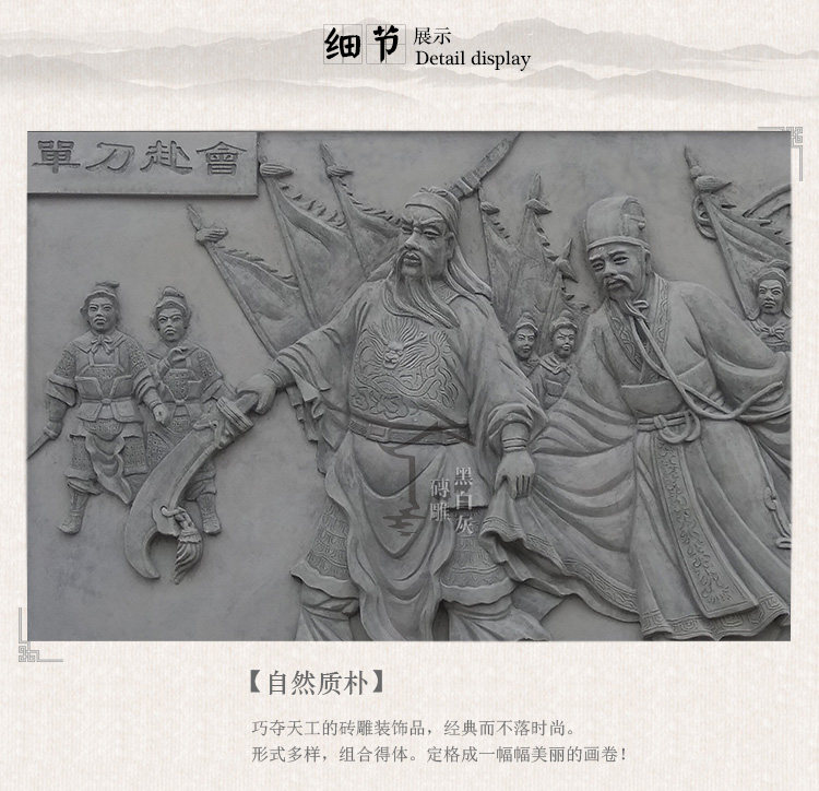 Древняя строительная кирпичная резьба стена имитация кирпичная резьба тень стена китайская три королевства интерпретация облегчения 2 м Гуань Ю. Одиночный нож до фресков