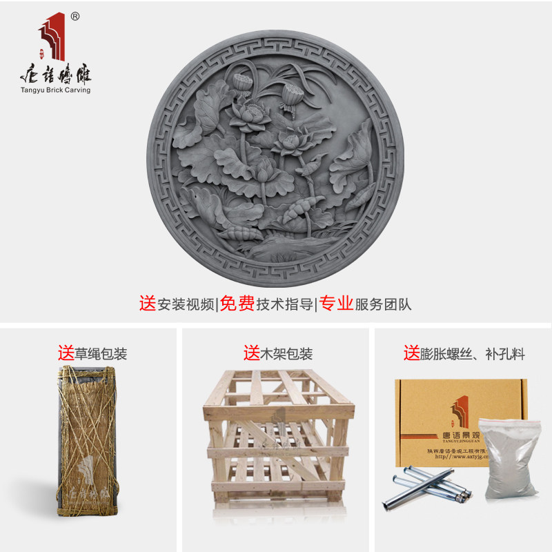 Язык Тан кирпит резьба Древнее здание двор двор Китайский двор имитация кирпича зеленого кирпича тень подвеска 1M лотос