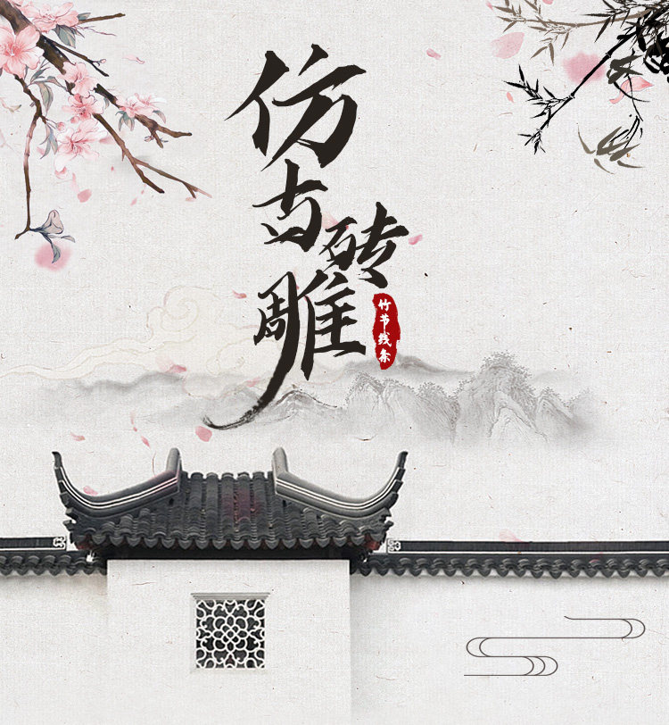 四合院 Резьба по кирпичу, украшение древнего двора, строительные материалы, старинный настенный рельеф 55*5 см, бамбуковая линия XT-012