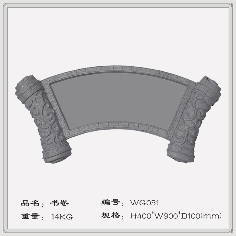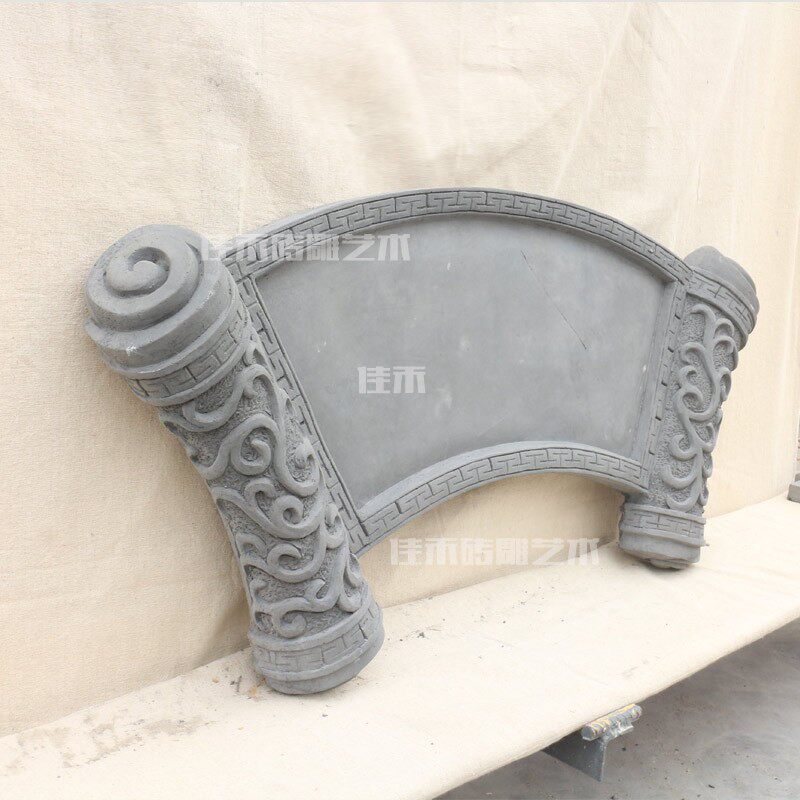 Антикварный зеленый кирпичный сухоз двор суховой двор луны изогнутый декоративный вентилятор вентилятора в форме дверной пластиной прокрутки прокрутки прокрутки
