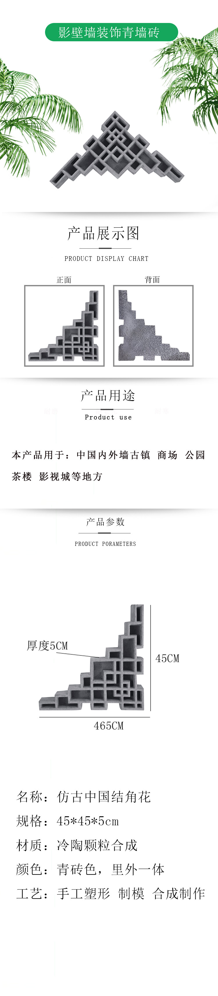 Кирпичная резьба антикварная стена рельеф теневой стена декоративная зеленая стена кирпич 45 см китайский развязый цветок JH999