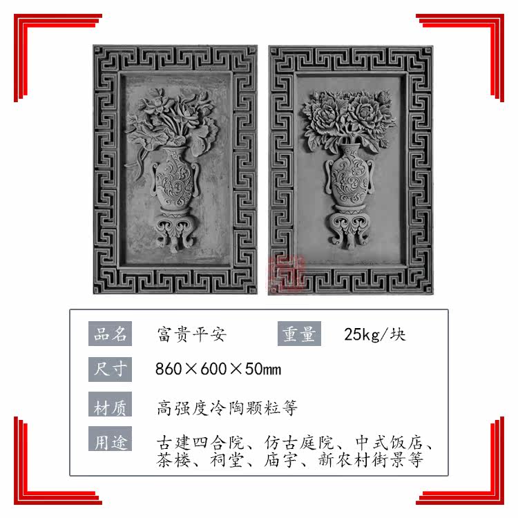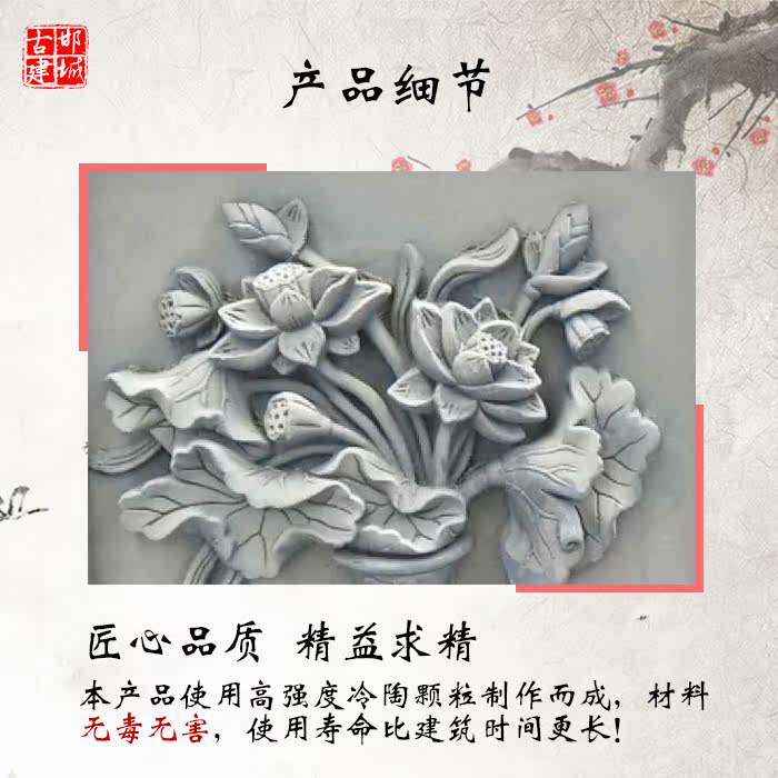 Ханчченг кирпич, резьба напротив богатства и богатства, пинг древний цветок строительного двора, богатый рельефный антикварный двор Стена Пеон и Лотос